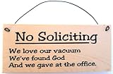 NO SOLICITING SIGN-This sign measures 3 inches by 7 inches by 1/2 inch. It is made of natural pine; real wood. The finish is lightly painted enamel so the grain in the wood can show through. Each has it's own unique character because of the grain in the wood but the wording is still the same. This is not a huge sign but big enough to get your point across. We ship through the Post Office because they are cheaper, faster to the East Coast and deliver on Saturday. Please give us an address that the Post Office can deliver to. Shipping Policy: